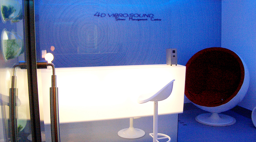 Light and colour mix in this project give feeling of ‘cyber like’ and modern. The plant besides reception balance the coldness of blue and deem light.