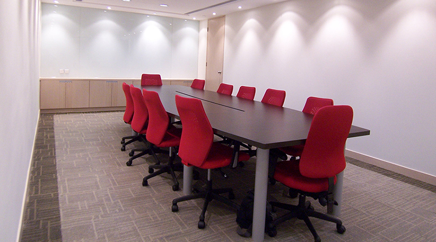 Less is more. This project emphasis plain and simple with ordinary design. Spotlights reflect by the walls in conference room make them looke softer